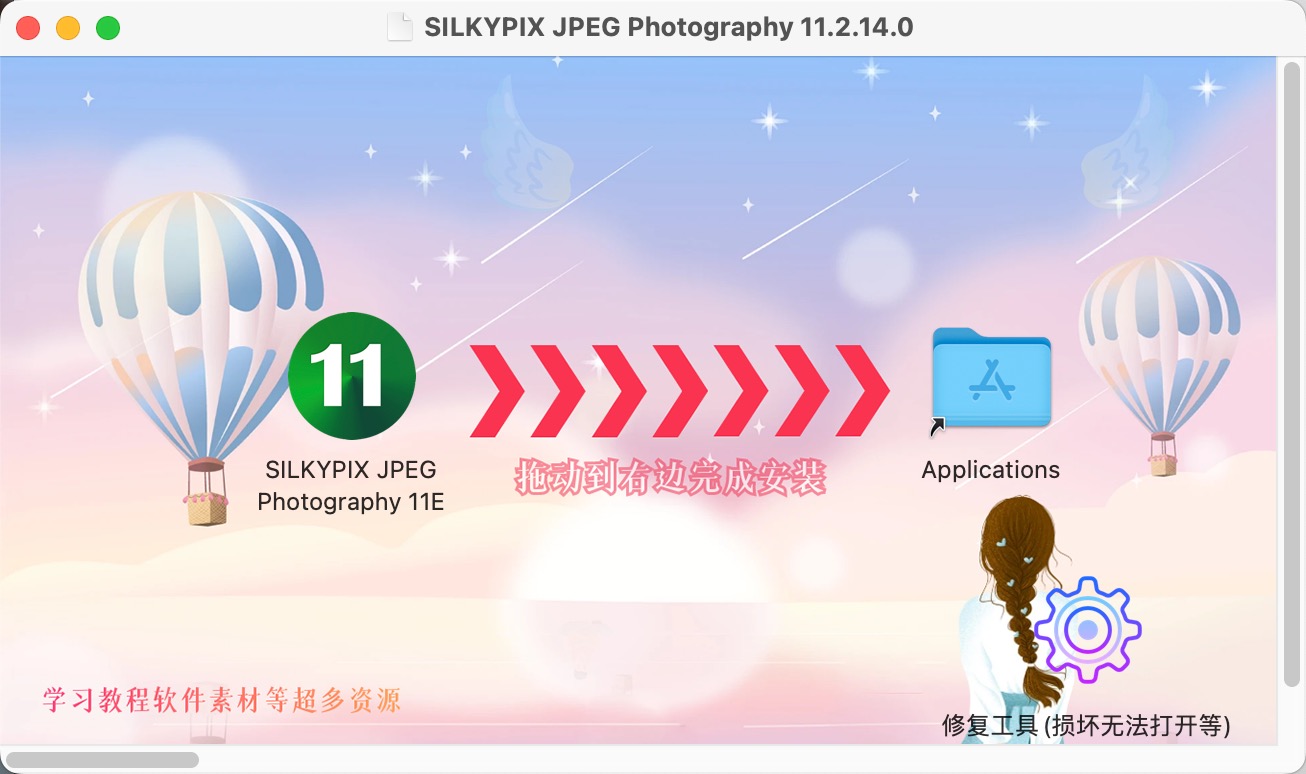 SILKYPIX JPEG Photography安装包下载完成打开,拖动安装。