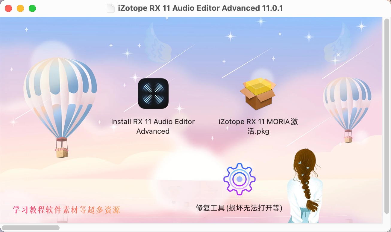 打开本站下载的iZotope RX 11安装包,双击Install RX 11 安装软件完成关闭,在安装激活补丁。