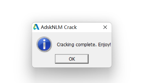 2、返回安装包,双击运行AdskNLM.exe,等待一会出现弹出运行结束点OK。