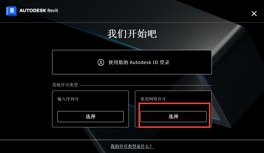 3、运行Autodesk Revit,选择右侧网络许可,激活完成。