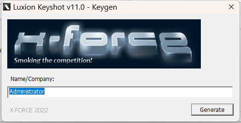 4、再返回XFORCE文件夹,打开keyshot11许可证生成器XF-Keyshot11-KG,在点击Generate。