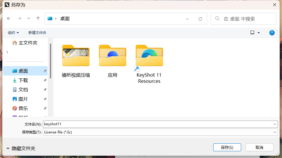 5、将keyshot许可证keyshot11.lic保存到桌面,然后再点击确定。
