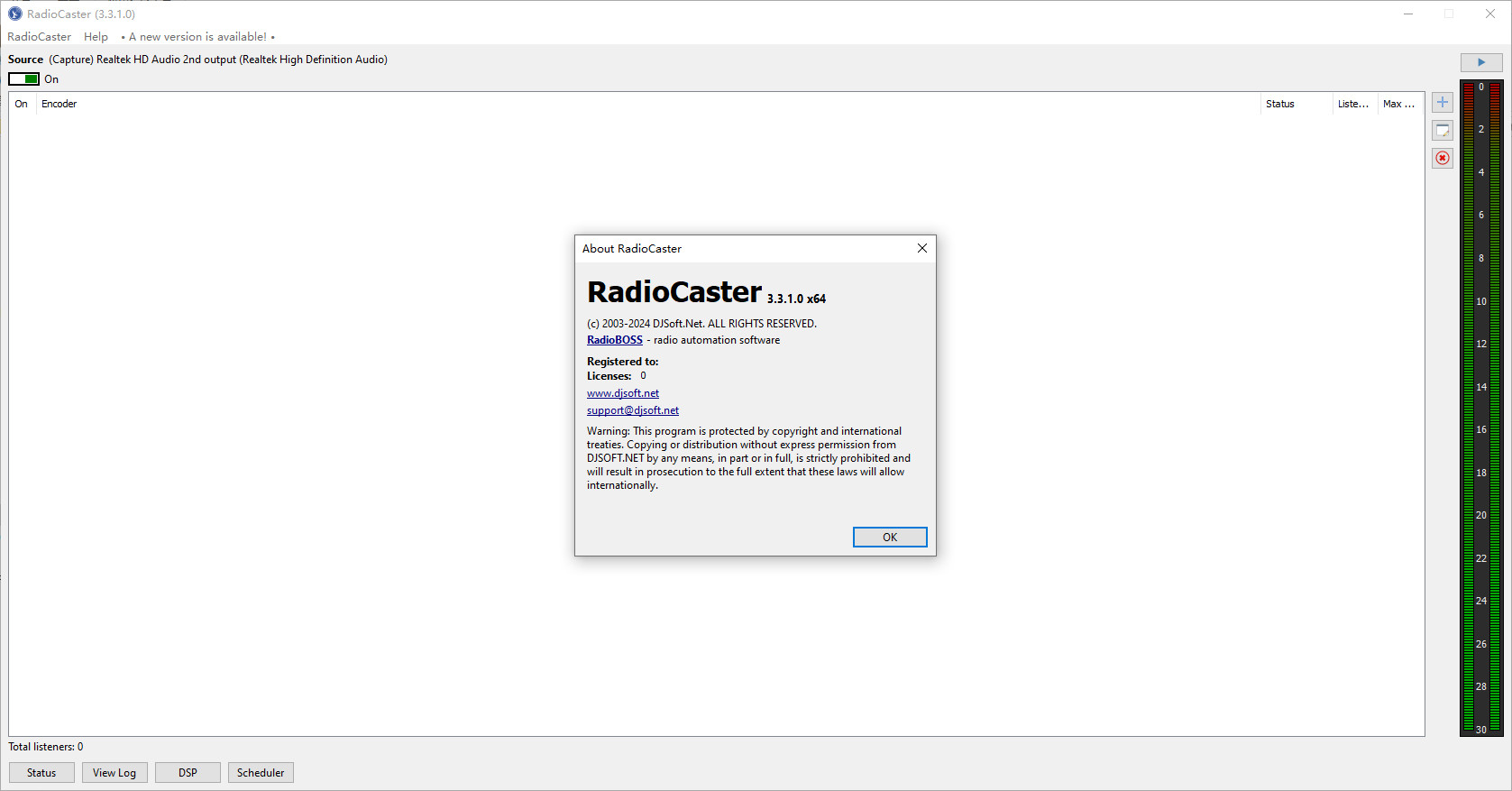 RadioCaster是一款实用的广播软件,用于获取连接到您的计算机或播放设备的任何音频(包括模拟音频)并将其在线广播到全世界。这意味着无缝使用旧音频源、现有无线电广播和其他材料,同时保持您自己的数字存在。配置是轻松的,而详细的统计数据可帮助您跟踪您的受众。需要的伙伴欢迎下载使用!