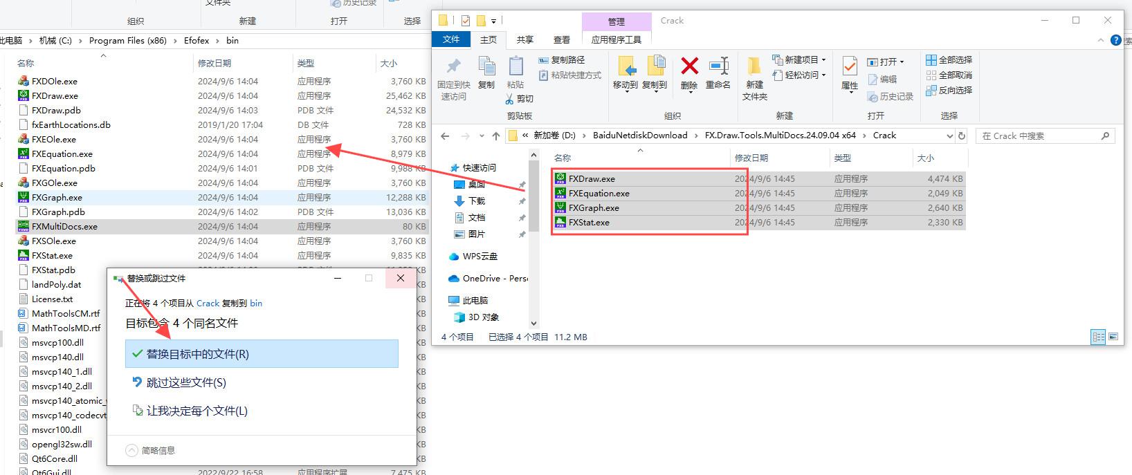 - 将Crack文件夹中全部破解补丁,复制到软件安装目录并替换