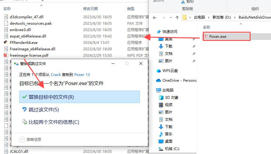 - 将Crack文件夹中的破解补丁复制到目录中,并替换。