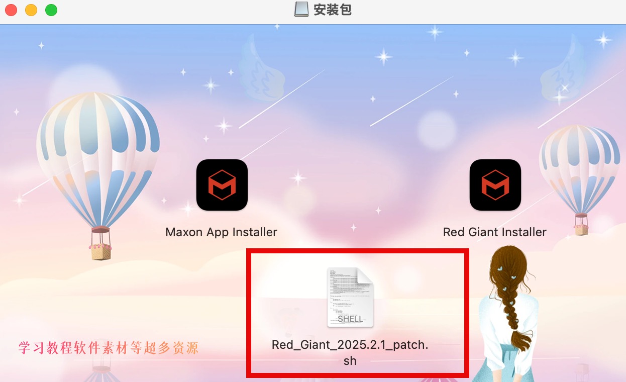安装完成后把Red_Giant_2025.2.1_patch.sh拖到桌面