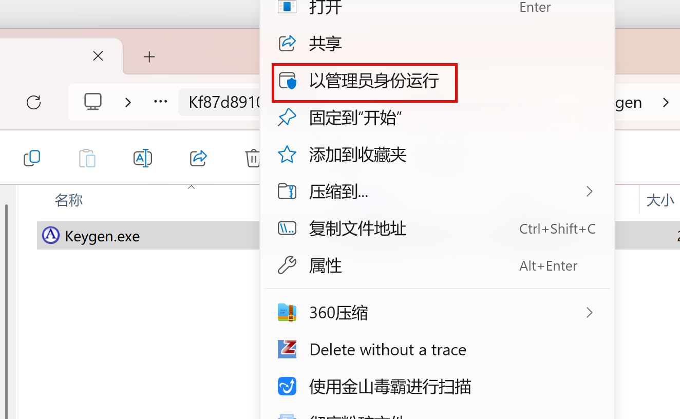返回到桌面的安装包,右键解压Keygen压缩包并打开,右击以管理员身份运行“Keygen”注册机