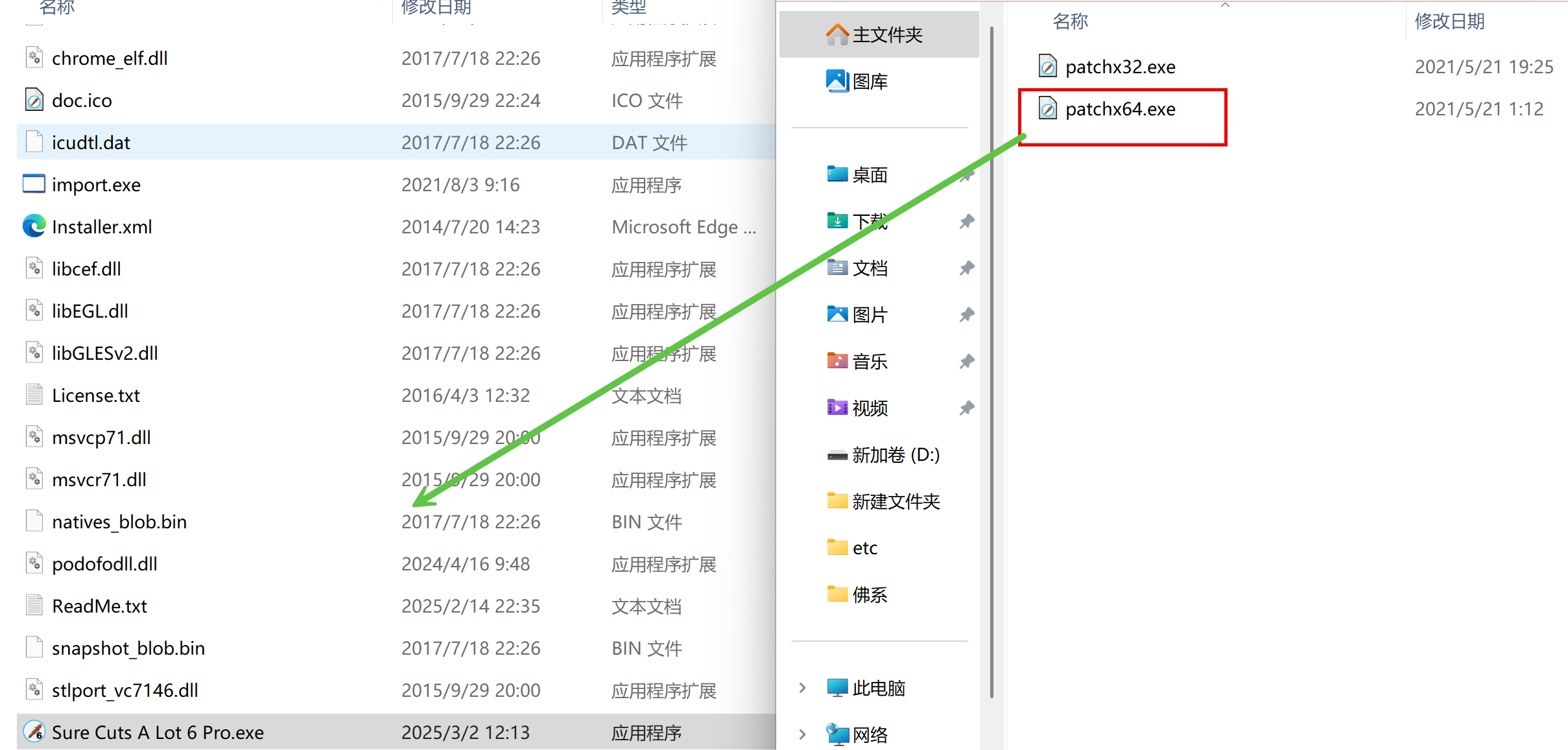 回到安装包解压patch.7z,并将patch文件中的破解文件patch64.exe复制到软件安装目录