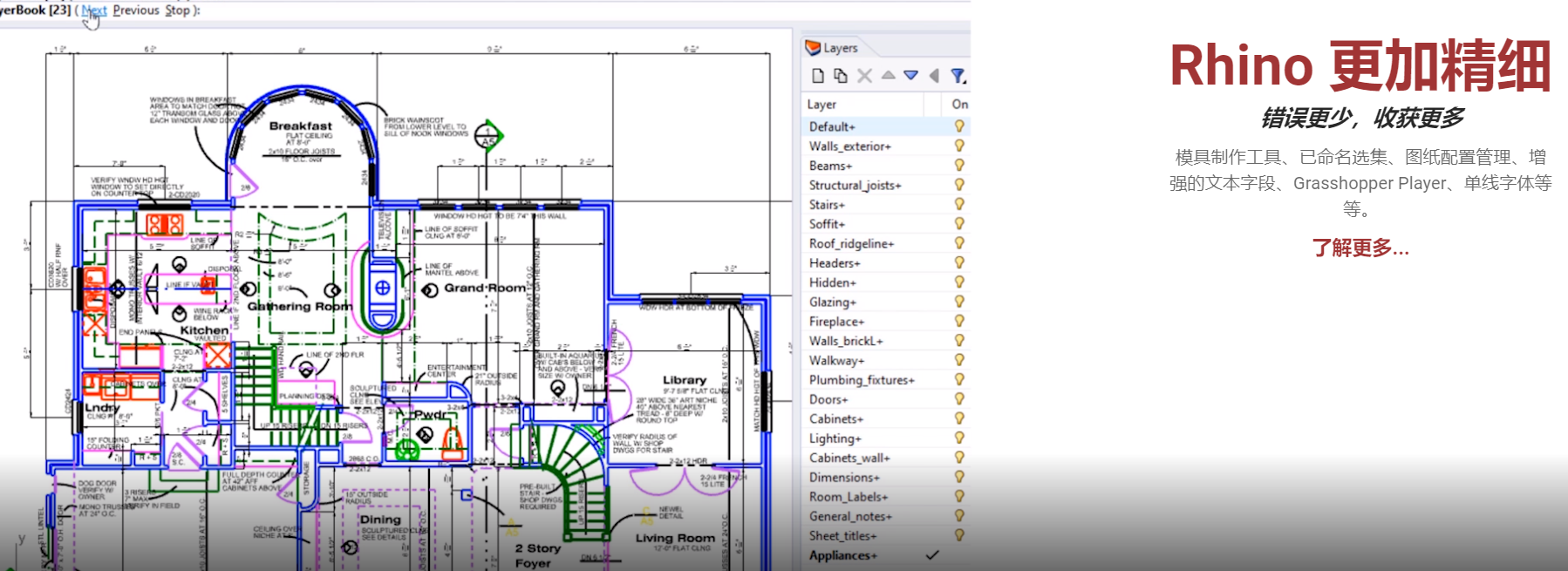 Rhinoceros 7永久使用版是一款功能强大的三维建模软件,软件基于NURBS,小巧简单,使用能轻松创建编辑、分析和转换NURBS曲线、曲面、和实体,并且在复杂度、角度、和尺寸方面没有任何限制,可精确地制作所有用来作为渲染表现动画、工程图、分析评估以及生产用的模型,软件采用高端的Flamingo及BMRT等渲染器,其图像的真实品质已非常接近高端的渲染器,可为各种卡通设计,场景制作及广告片头打造出优良的模型。