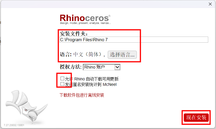 1、解压本站在下载的安装包,双击运行rhino_en-us_7.27.23032.13001进行安装。