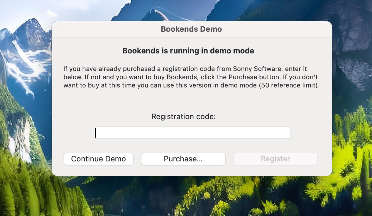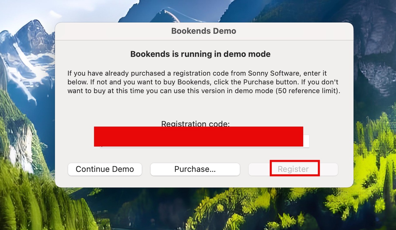 安装完成后打开Bookends Mac,弹出注册窗口,把注册窗口放在一旁