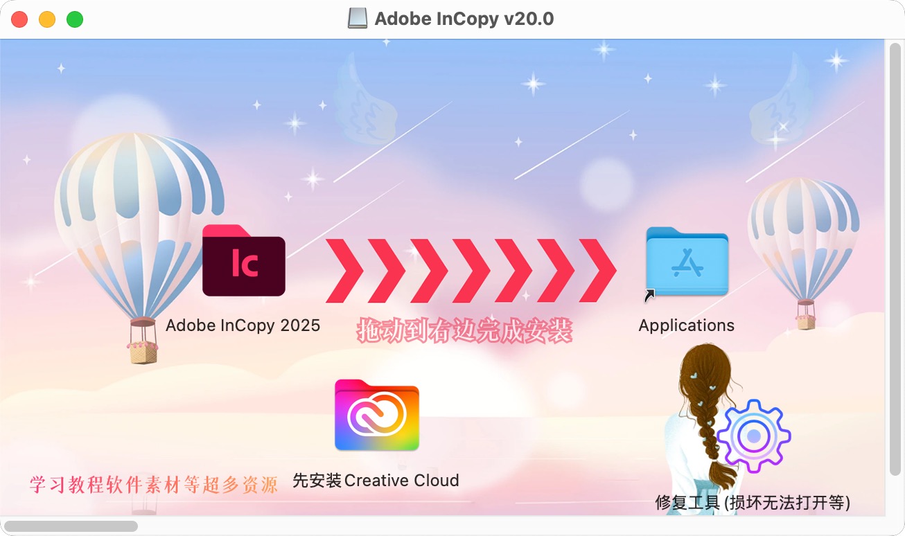 2、将Adobe InCopy 2025拖到右侧安装即可。