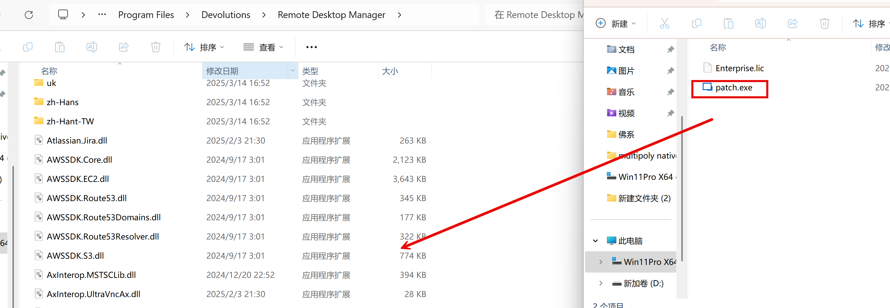 将patch.7z解压,并复制到默认目录C:\Program Files\Devolutions\Remote Desktop Manager