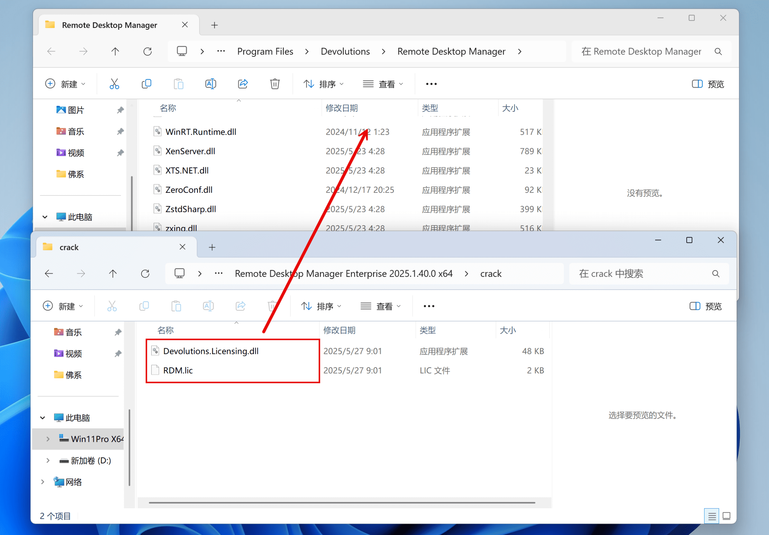 将crack里的内容复制到软件安装目录,默认目录为C:\Program Files\Devolutions\Remote Desktop Manager