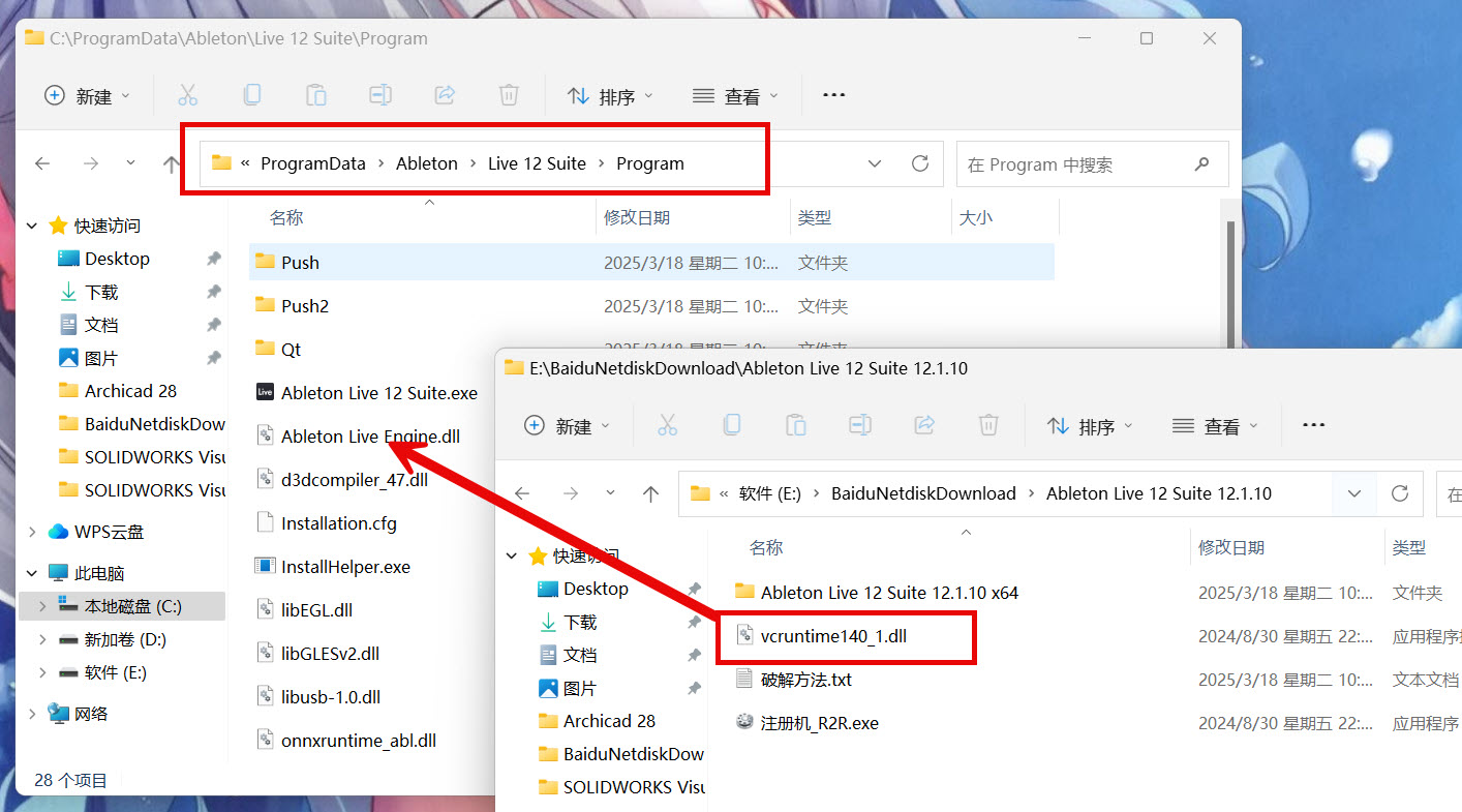 2、将vcruntime140_1.dll复制到安装目录C:\ProgramData\Ableton\Live 12 Suite\Program\