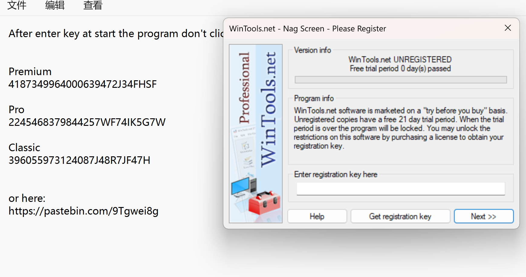 安装完成后打开软件会弹出注册界面,按照对应程序填入KEY即可
