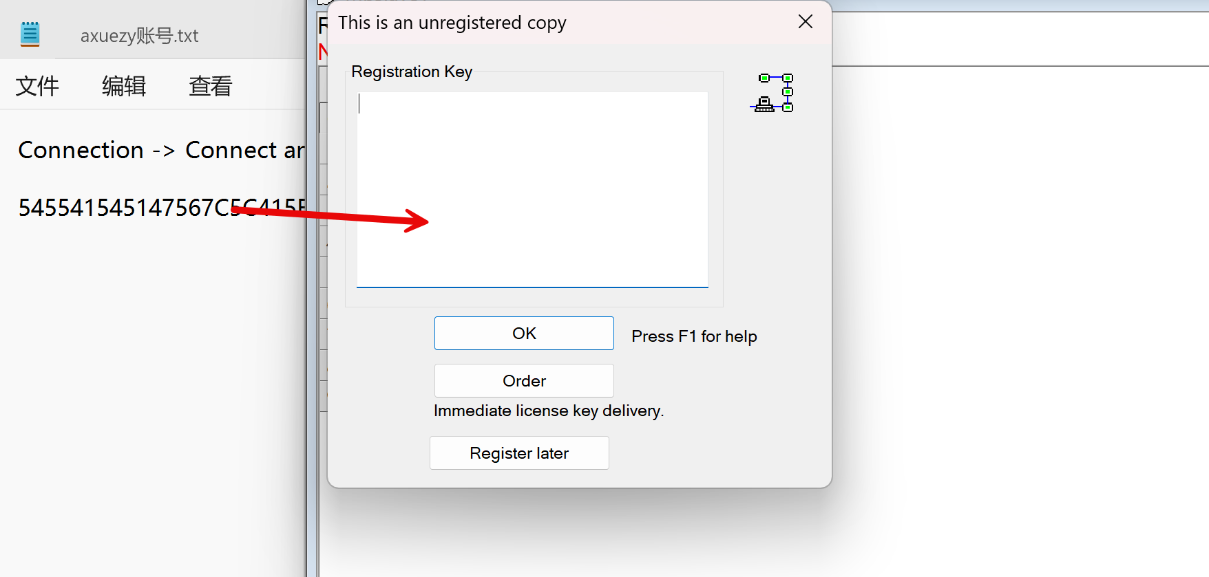 返回到安装包,双击打开“Key”文本,将里面的注册码复制粘贴到注册框内,点击“OK