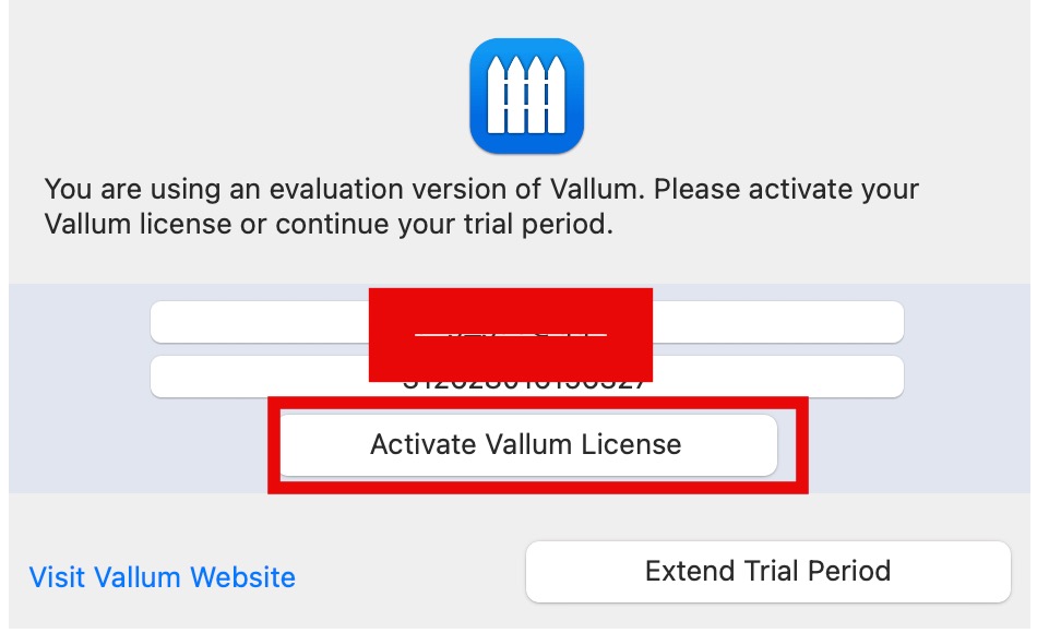 弹出注册框,返回镜像包,打开注册码,将注册码分别复制粘贴到注册框中,点击activate vallum license即可