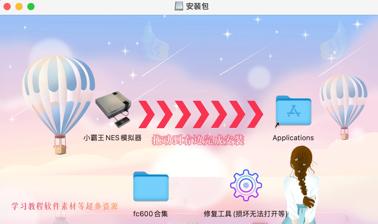 模拟器安装完成后拖动下放fc600集合文件夹放到桌面,或者其他利于自己找到的位置打开fc600合集文件夹,打开模拟机,找到NES,将游戏拖放进去即可