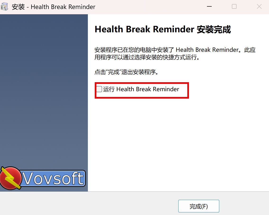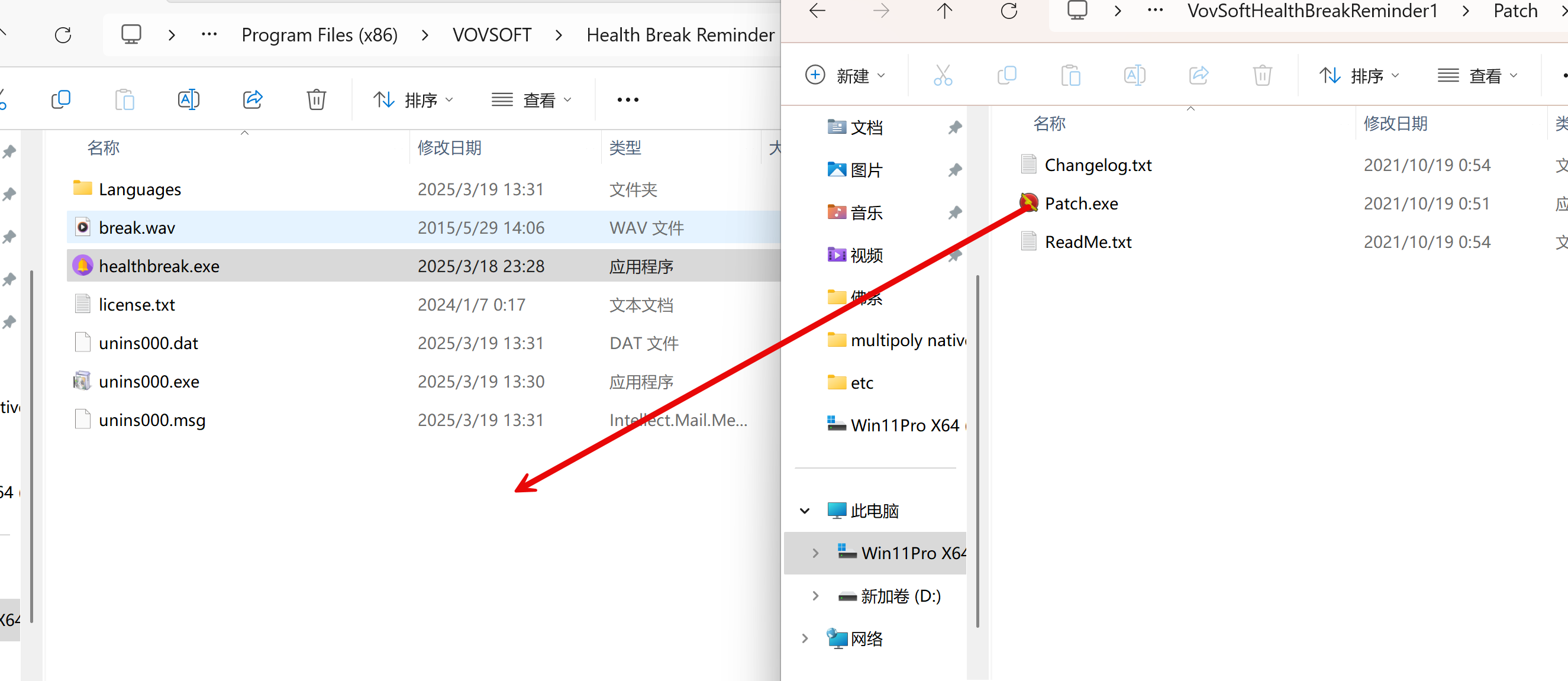 将激活工具复制粘贴进软件目录中,并以管理员身份运行它。该默认目录为:【”C:\Program Files (x86)\VOVSOFT\Health Break Reminder”】