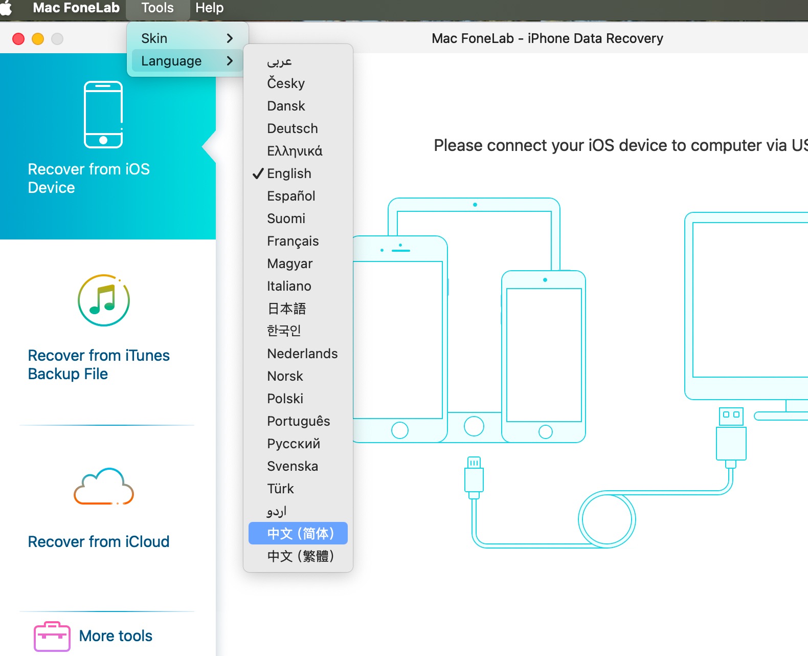 如果用户无法直接访问 iOS 设备,Mac FoneLab 可以从 iTunes 或 iCloud 备份中提取数据,并支持预览备份内容,方便用户选择需要恢复的文件。 - 用户友好的界面