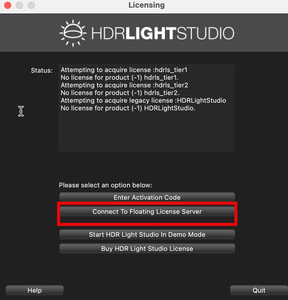 应用程序中打开HDRLightStudio软件,点击Connect to Floating License Server