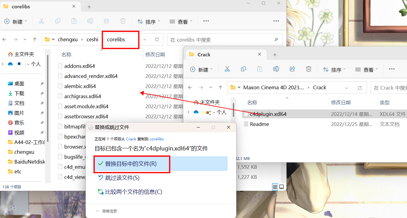 3、将安装包Crack文件夹里的破解文件夹中的补丁,复制到软件安装目录下的corelibs文件夹内并替换。