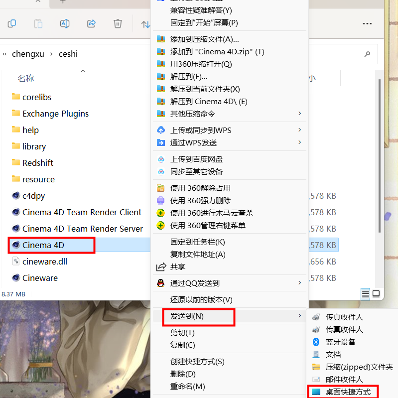 2、打开安装目录,为了方便使用c4d,可创桌面建快捷方式。