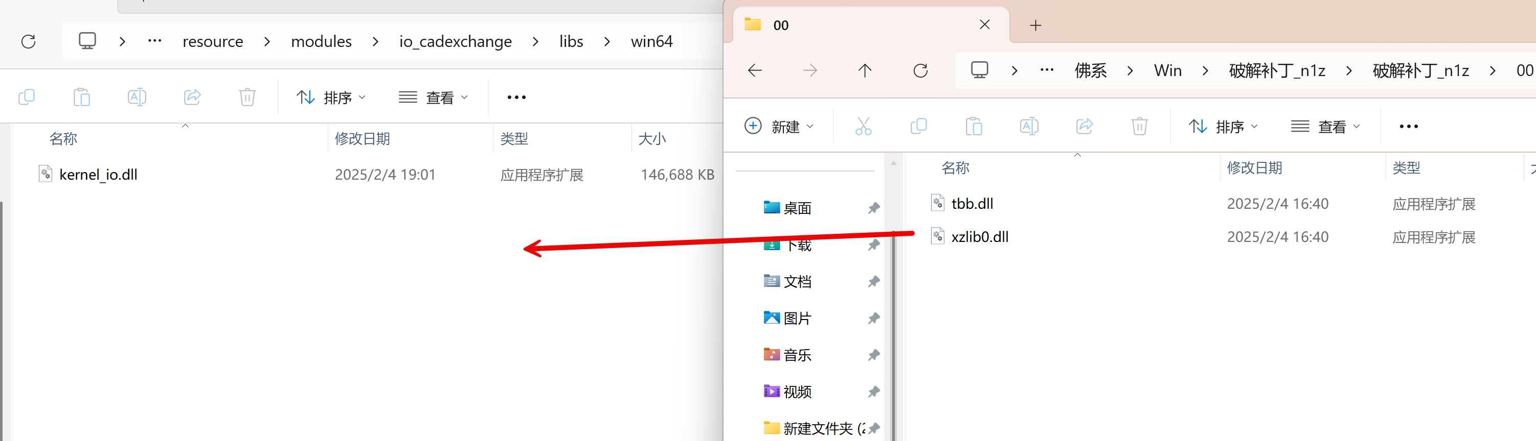3、将00文件夹中的补丁复制到C:\Program Files\Maxon Cinema 4D 2025\resource\modules\io_usd.module\libs\win64