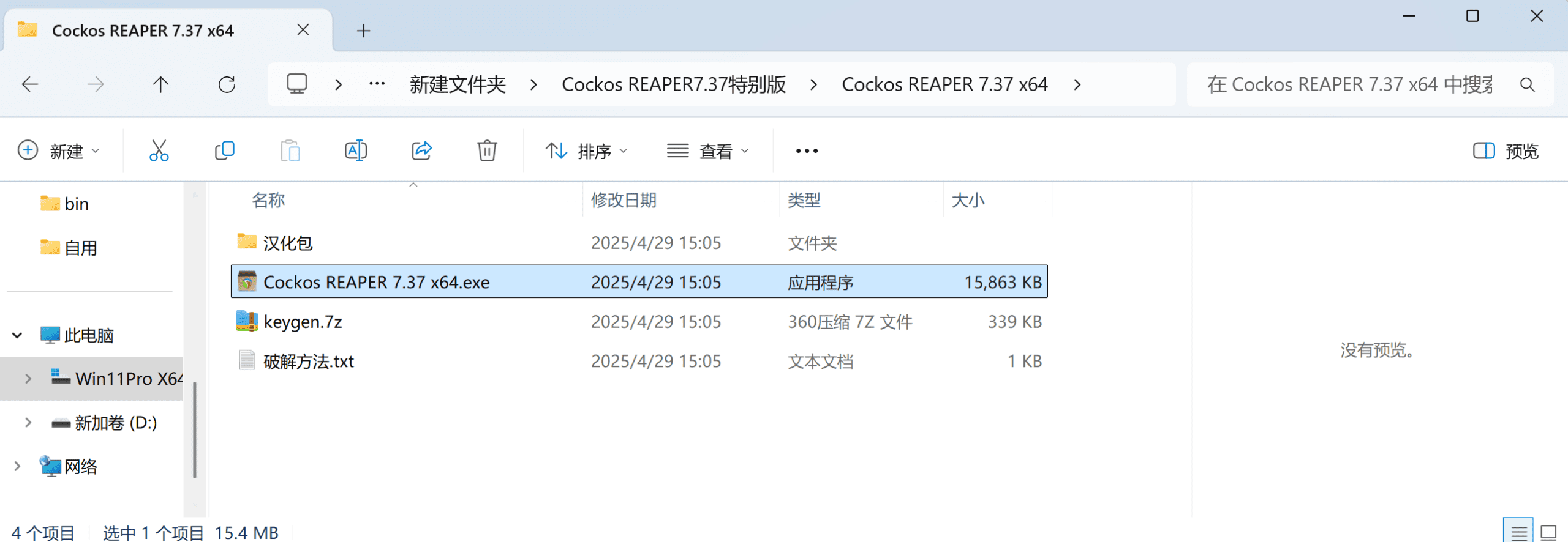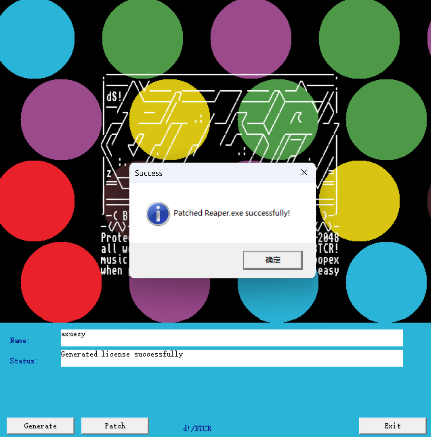 选择软件安装目录(默认为C:\Program Files\REAPER (x64))的reaper.exe进行破解,破解成功