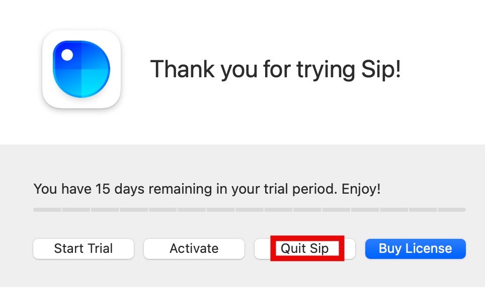 安装完成后打开软件,显示试用,点击Quit Sip关闭软件