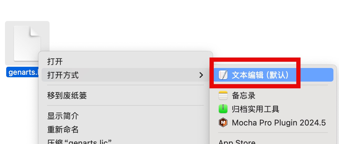 右击打开刚刚拖到RLM文件中的genarts.lic补丁,选择其他方式