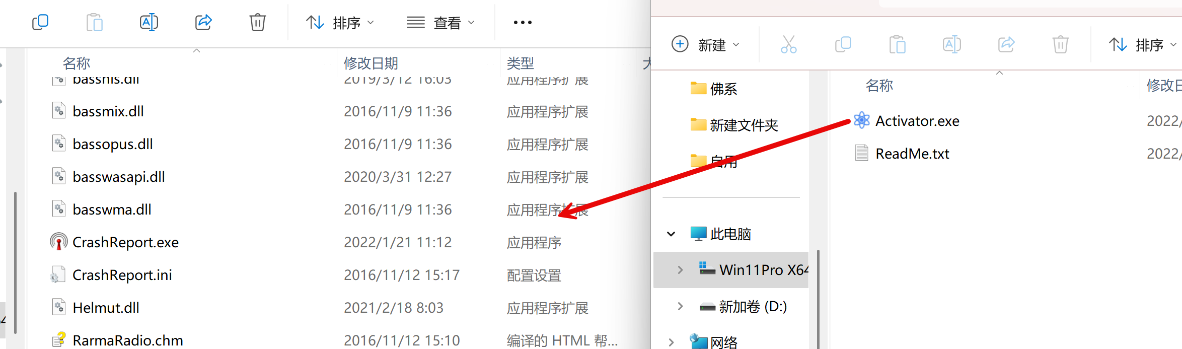 解压安装包内的Activator.7z,再打开文件夹把Activator.exe,复制到软件目录下