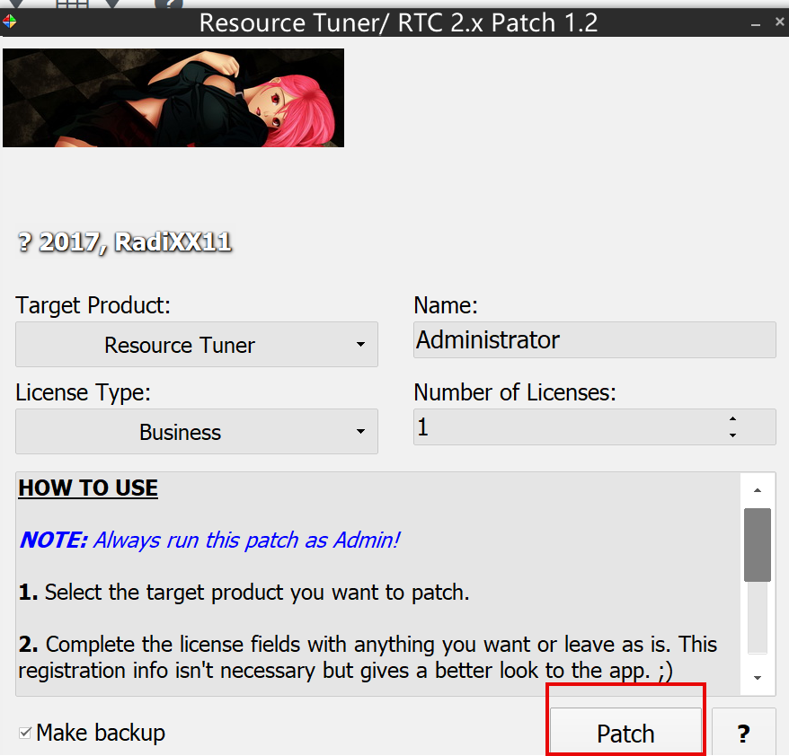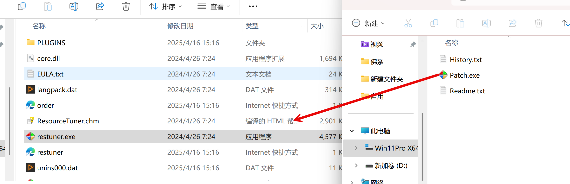 返回到安装包将“patch”进行打开,将激活工具复制粘贴进软件目录中并以管理员身份运行它,该目录为:【”C:\Program Files (x86)\Resource Tuner”】