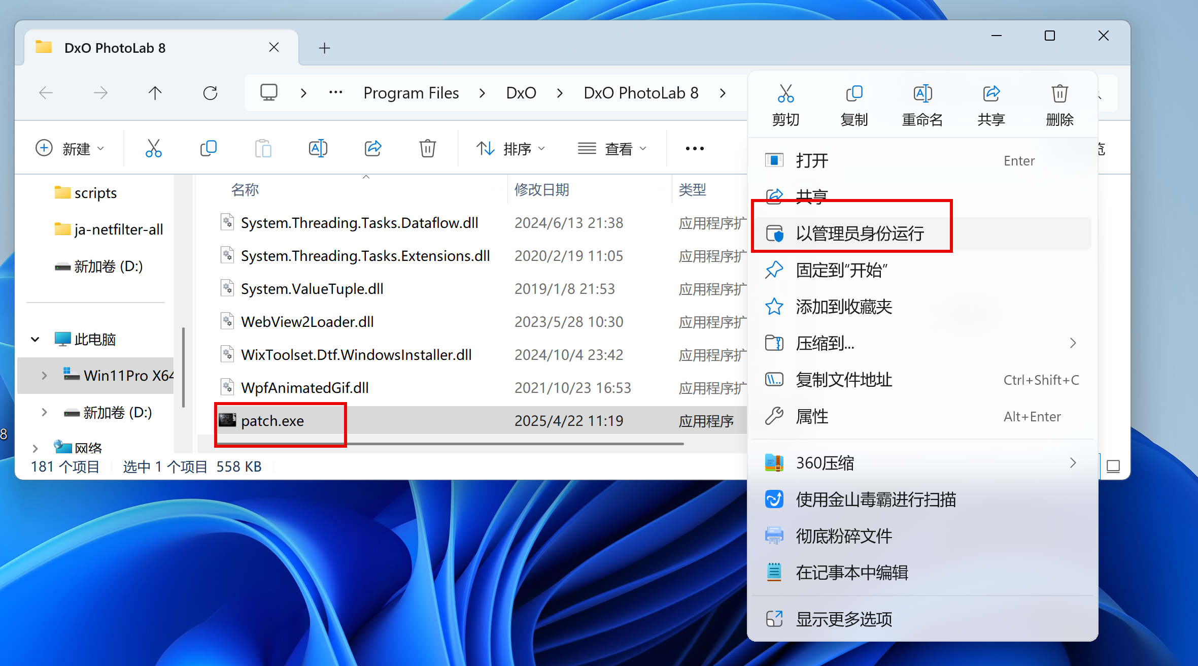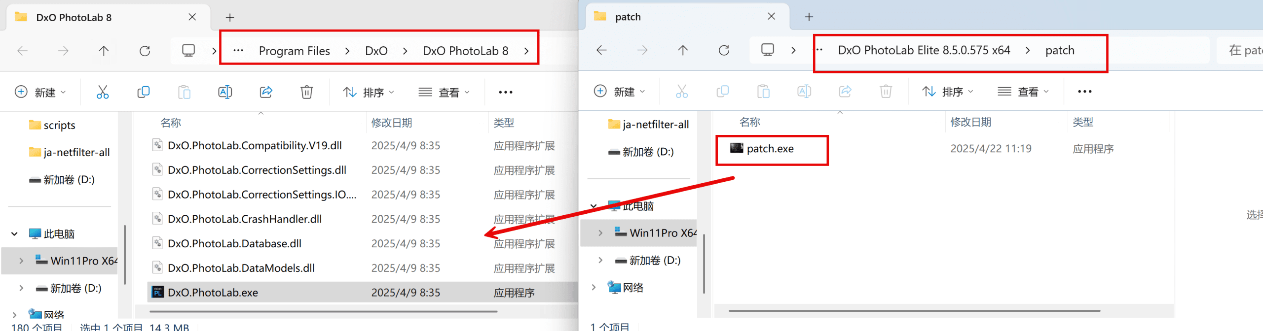 将破解补丁复制到软件安装目录,默认目录为C:\Program Files\DxO\DxO PhotoLab 8