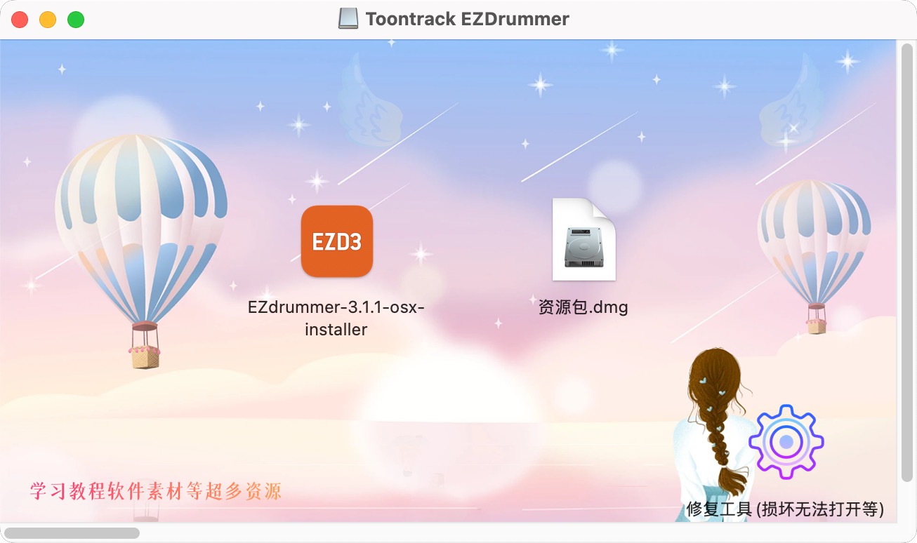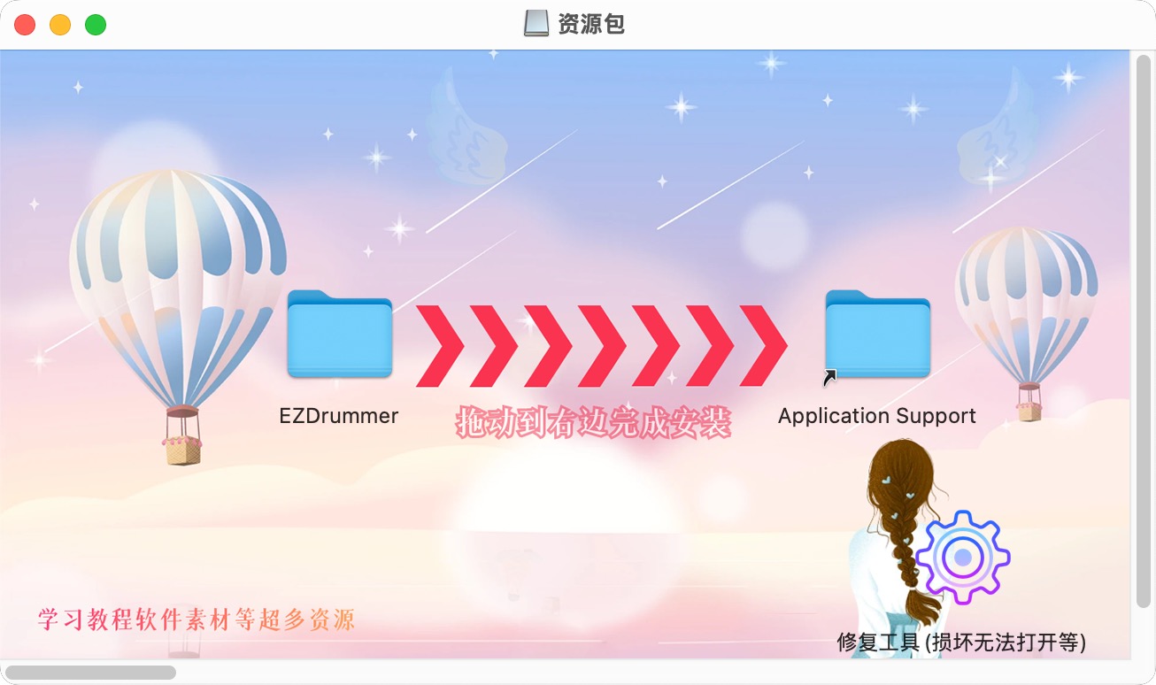 回到安装包并打开资源包,将【EZDrummer】拖动至右侧即可