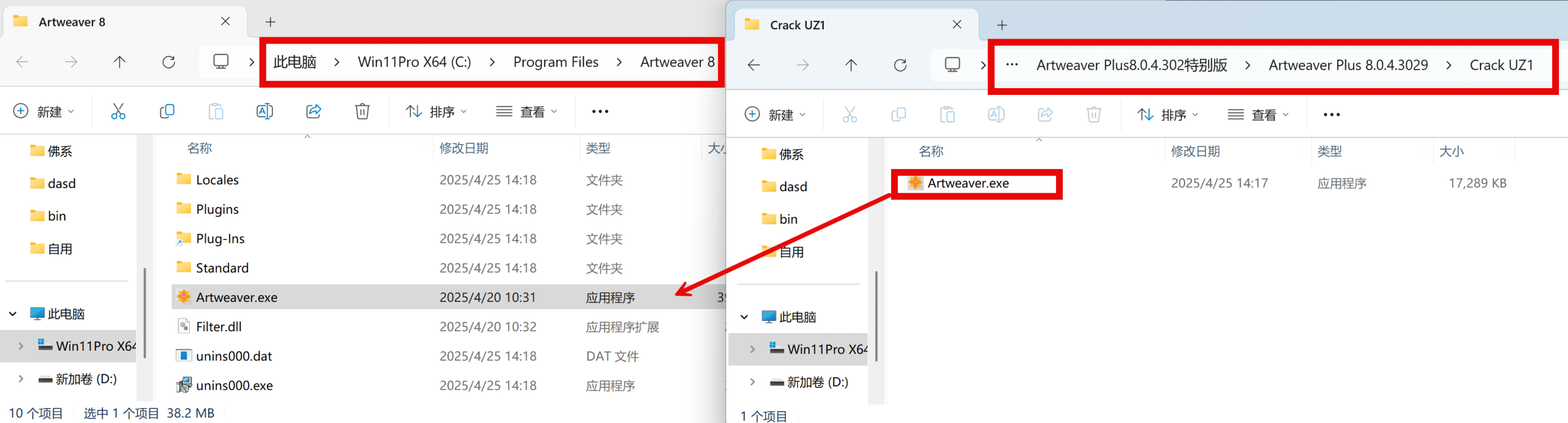 将破解文件“crack”中的Artweaver.exe(根据自己的系统要求选择)复制到软件安装目录,并替换