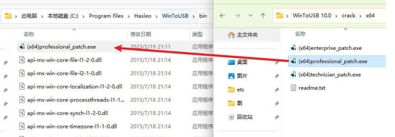 最新版软件安装完成,找到桌面上的软件右键选择“打开文件所在的位置”,选择你想激活的版本,将对应的patch复制粘贴进软件目录中,该目录默认为:C:\Program Files\Hasleo\WinToUSB\bin。
