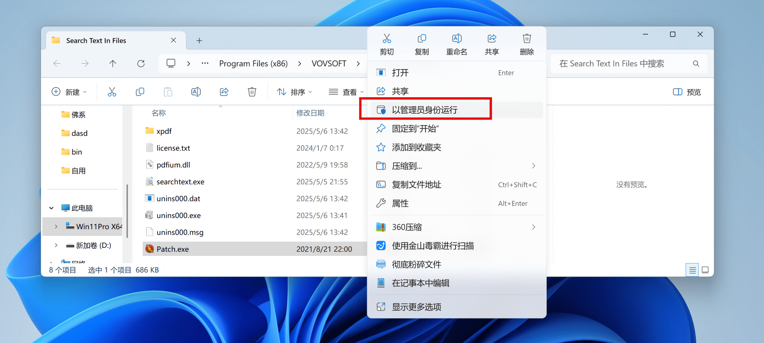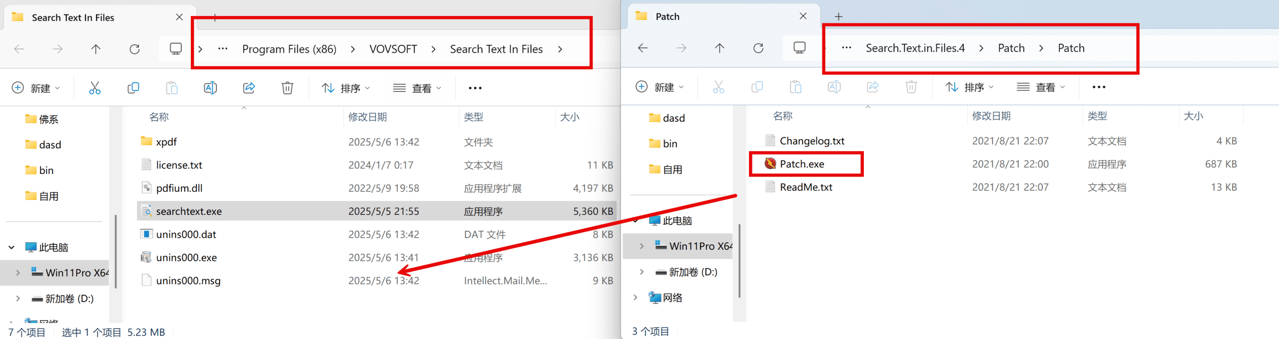 将激活工具复制粘贴到软件目录中, 该目录为:【”C:\Program Files (x86)\VOVSOFT\Search Text In Files”】
