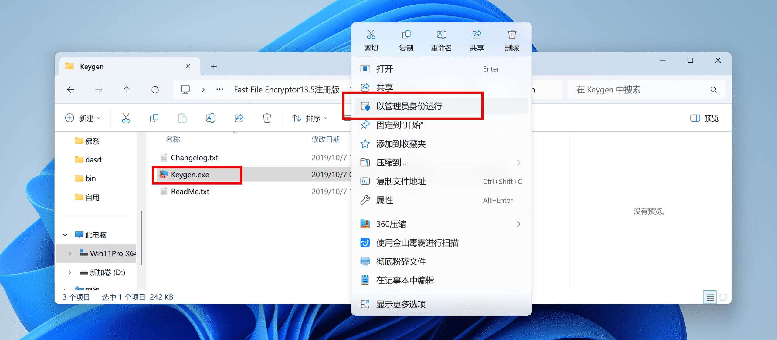 返回到安装包将Keygen.7z进行解压,打开Keygen文件夹,右键以管理员身份运行Keygen.exe注册机
