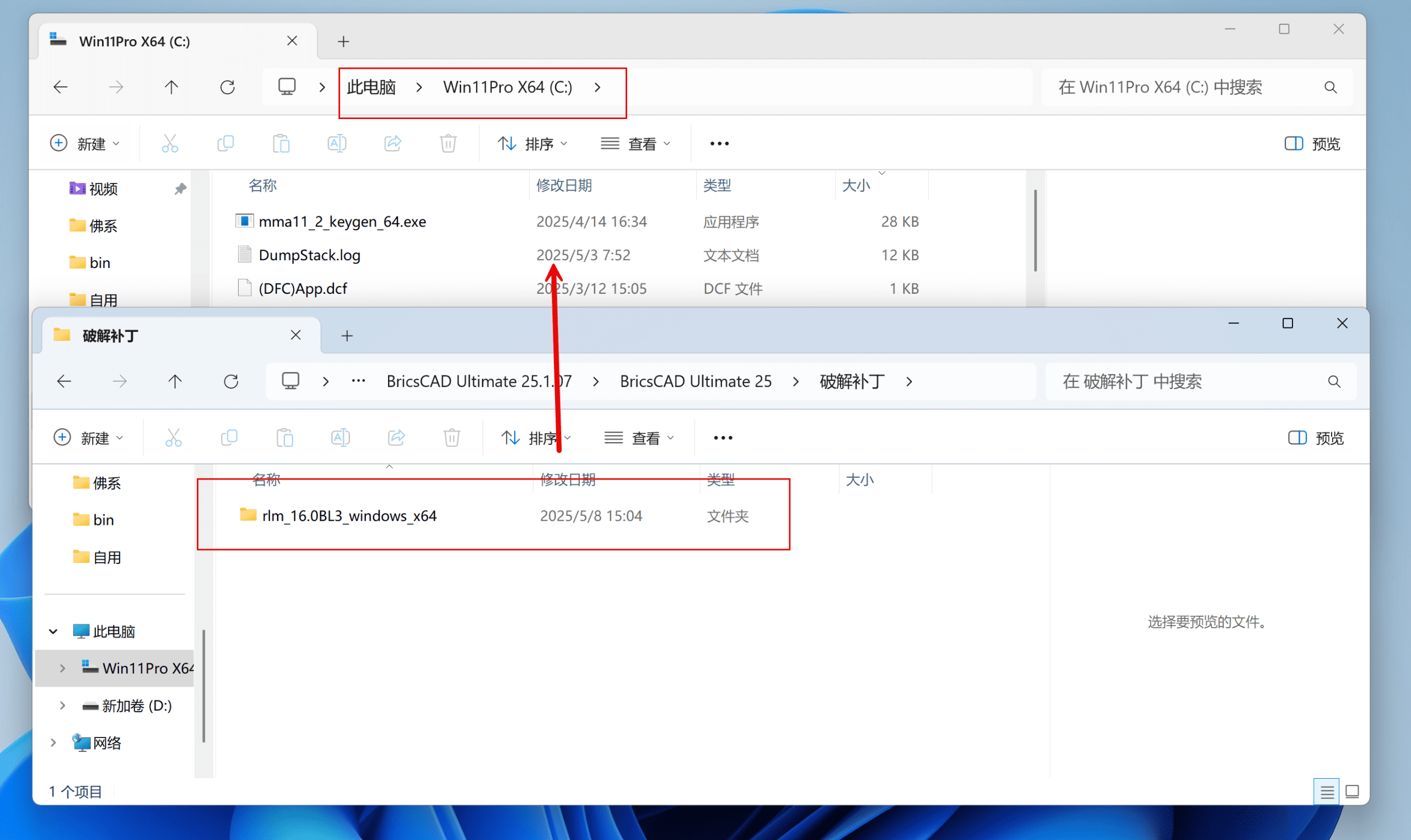 打开破解补丁文件夹,将rlm_16.0BL3_windows_x64复制到C盘