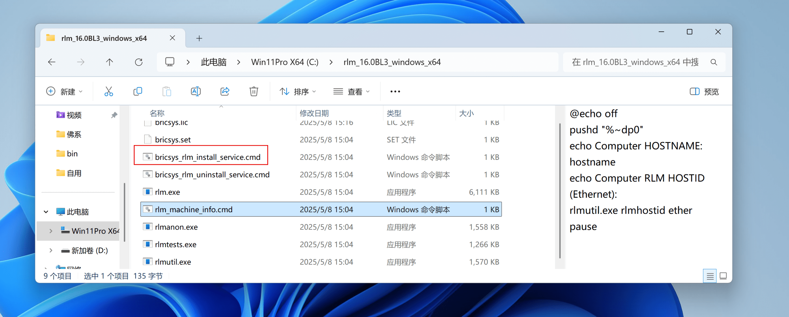 右键管理员运行bricsys_rlm_install_service.cmd等待完成