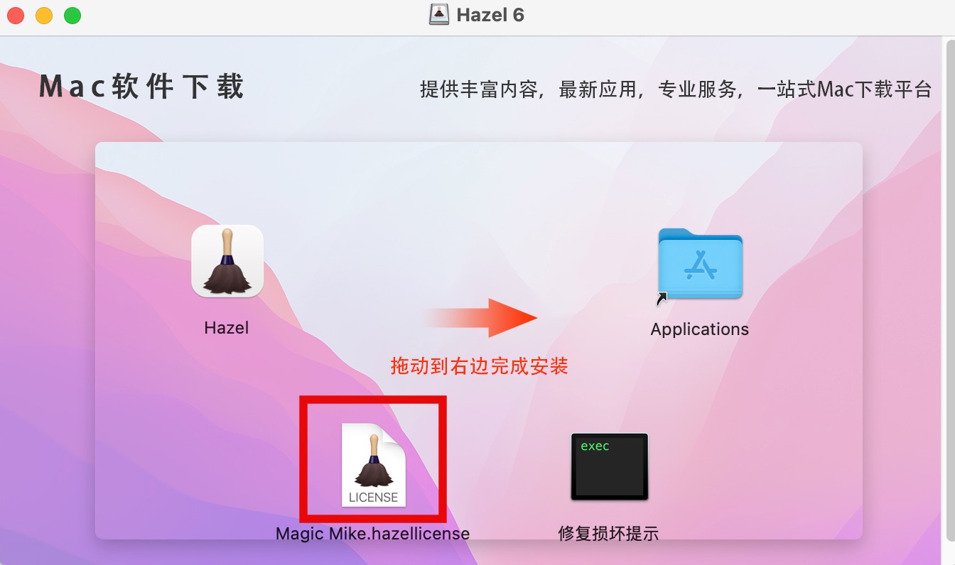 然后回到hazel 软件包中,打开Hazel 破解文件“许可证”