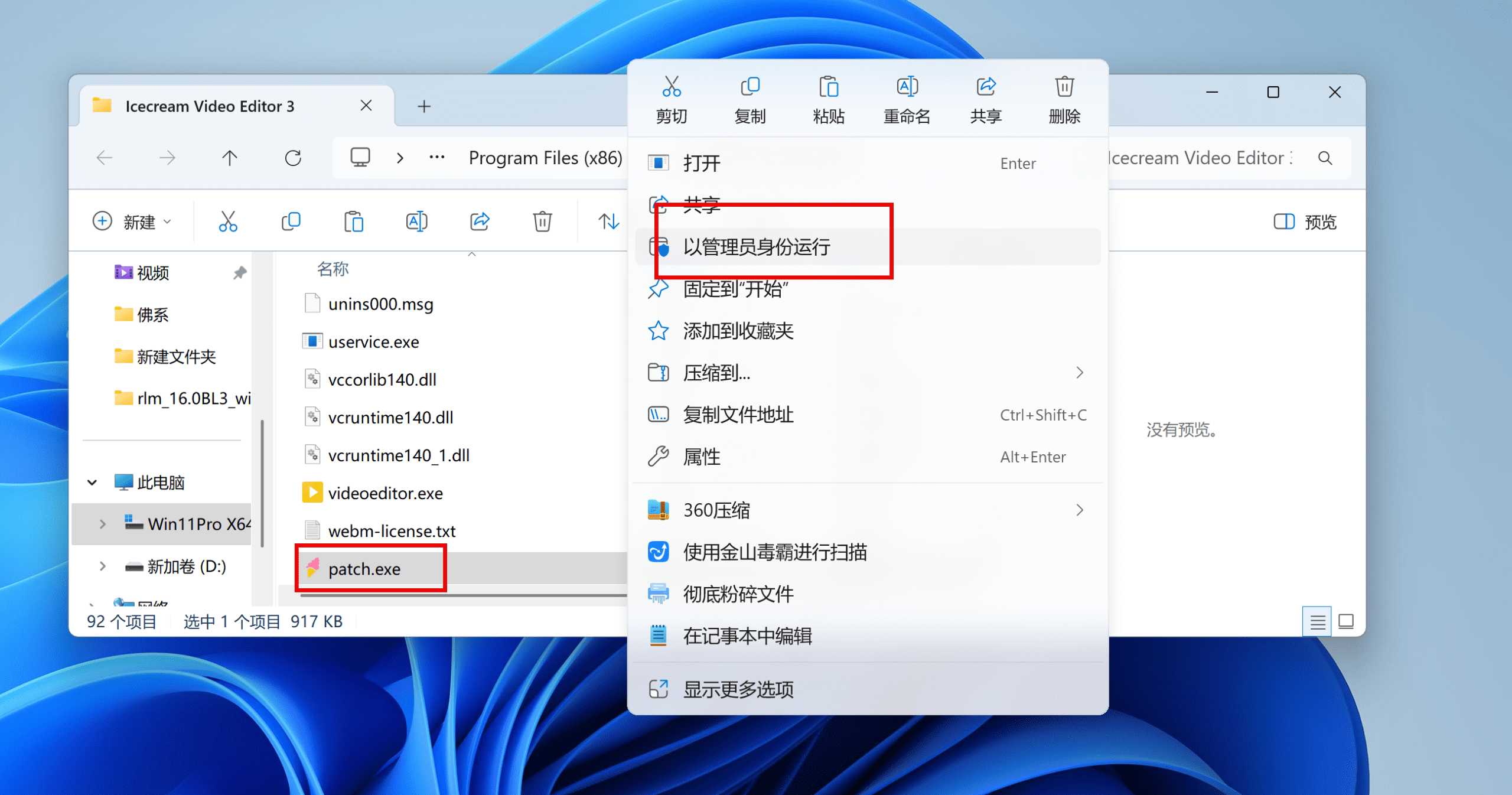 返回到安装包右键将patch.7z进行解压,并双击打开patch文件夹,将下放的“Patch”复制粘贴到程序安装目录中,并以管理员身份运行Patch