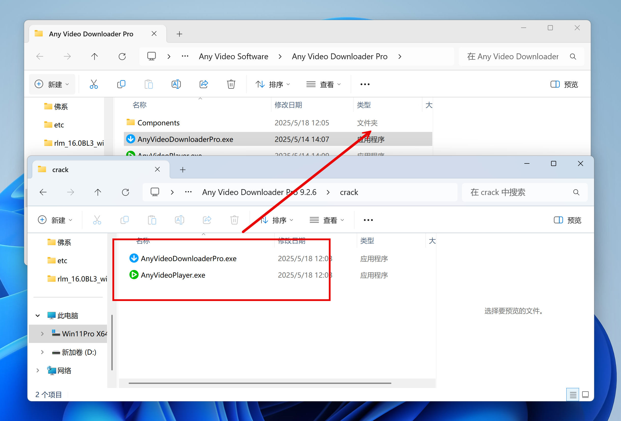 打开软件安装位置,然后返回到安装包,打开crack uzi文件夹,将里面的破解补丁复制到安装目录,默认路径: “C:\Program Files (x86)\Any Video Software\Any Video Downloader Pro”