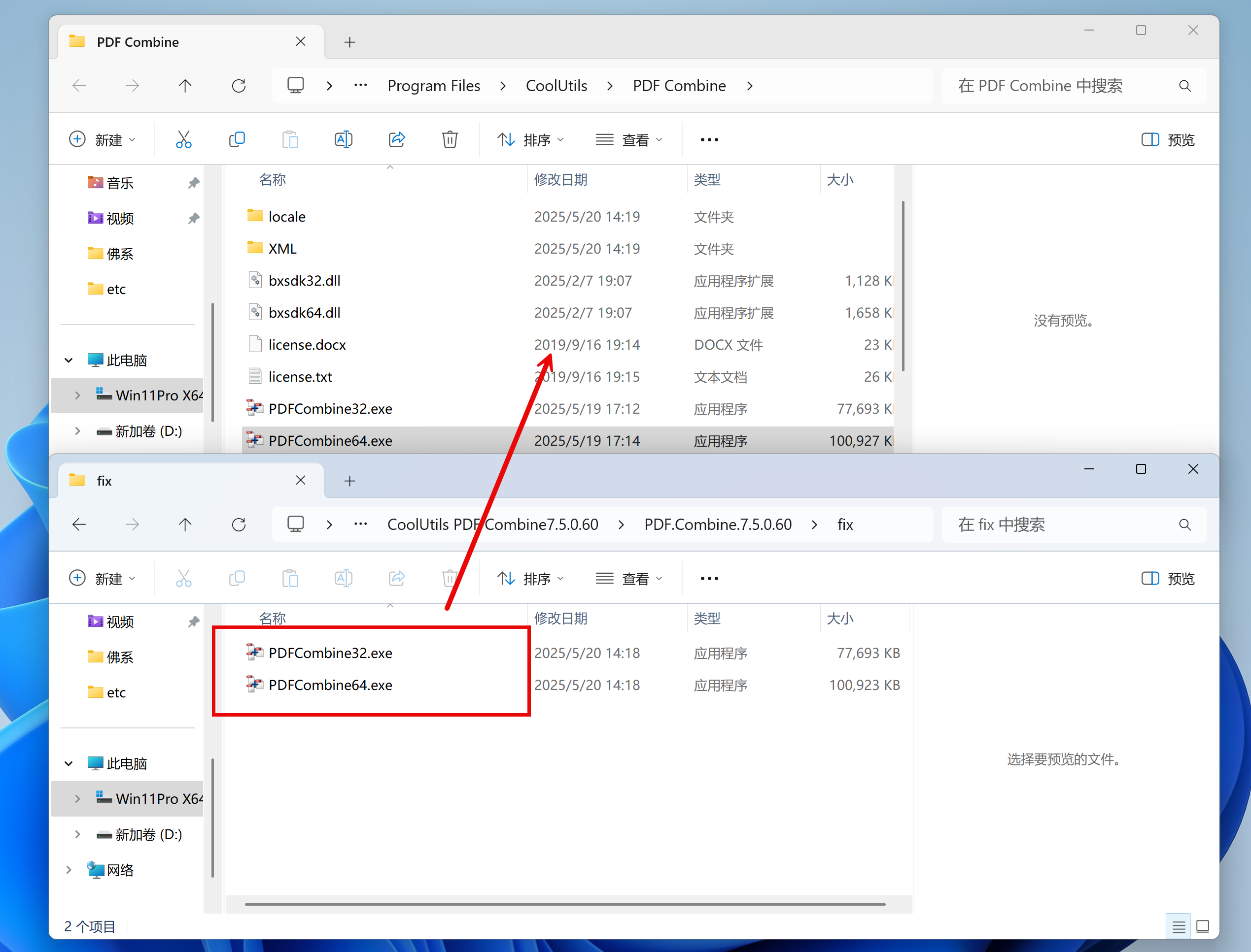 打开安装包中”fix”文件夹,将里面的破解补丁全部复制到安装目录下,并进行替换;C:\Program Files\CoolUtils\PDF Combine