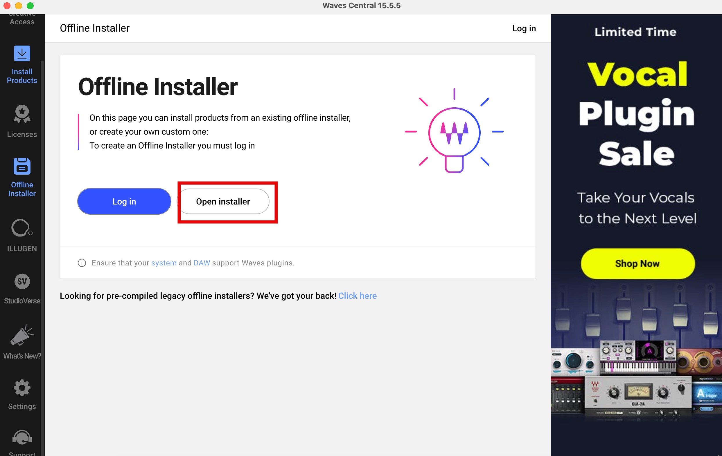 选择Offline Installer,点击Open installer