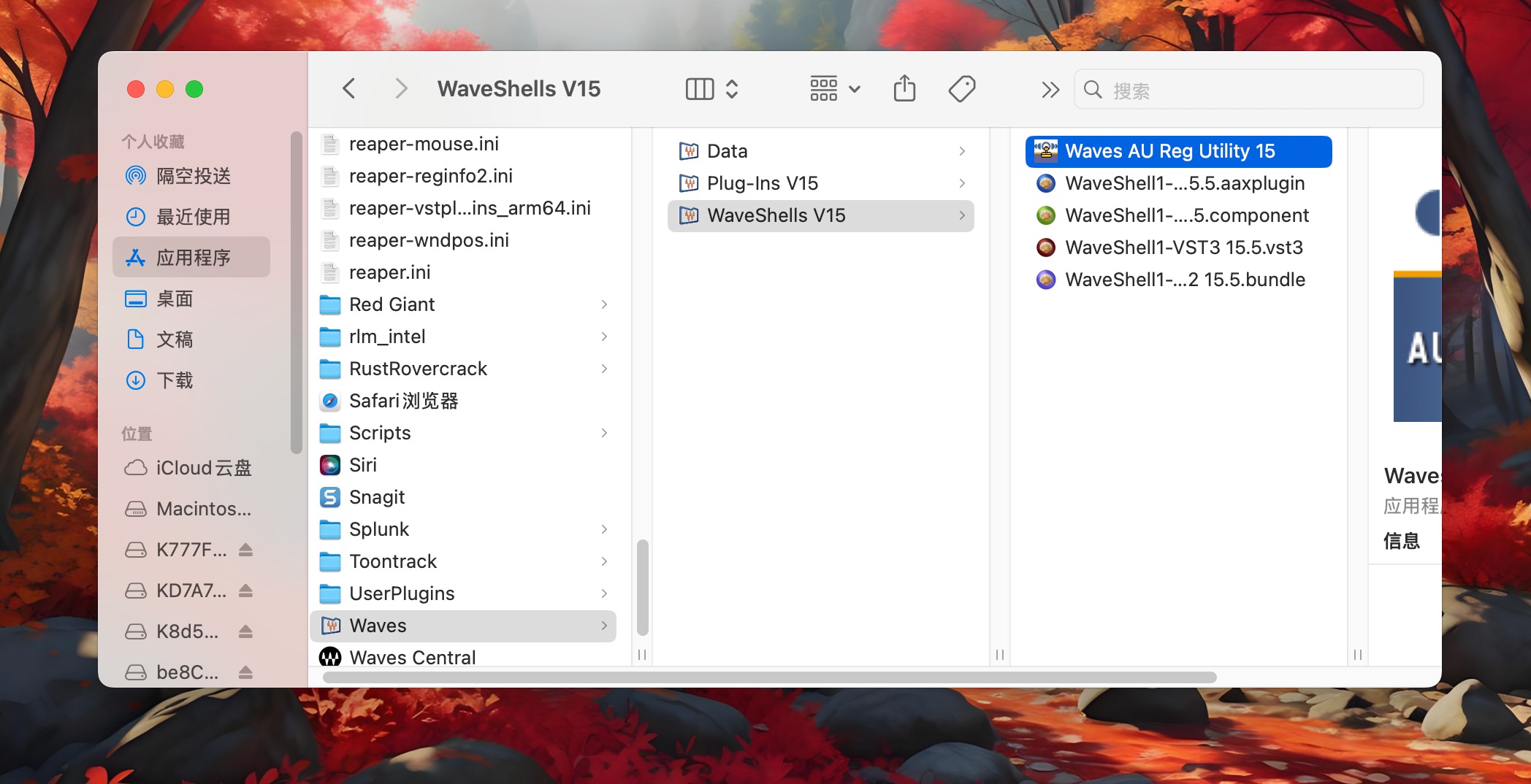 打开插件仍然没有破解可以尝试运行Waves AU Reg Utility.app