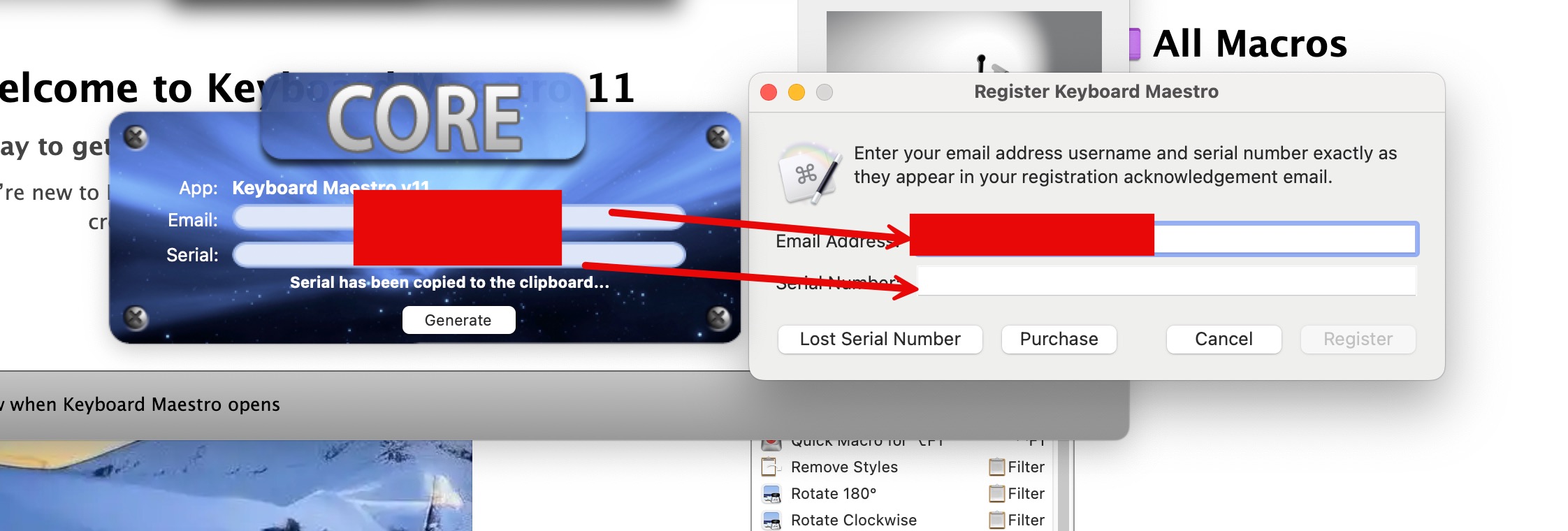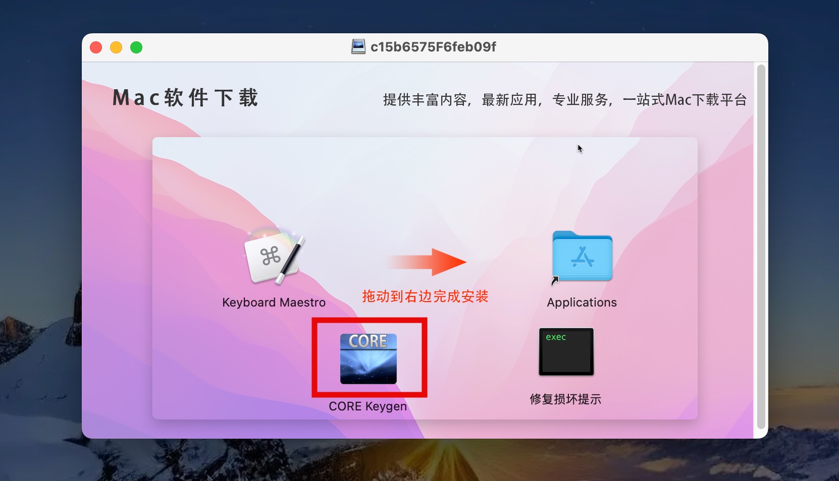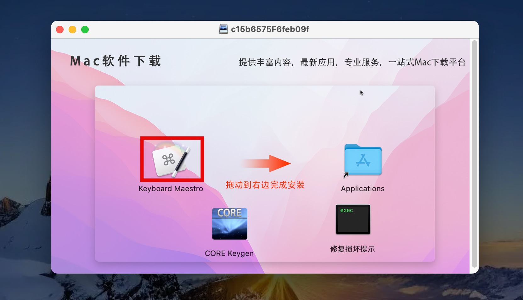 弹出注册窗口,不要关闭,放置一旁备用,返回软件镜像包,双击打开Keyboard Maestro注册机