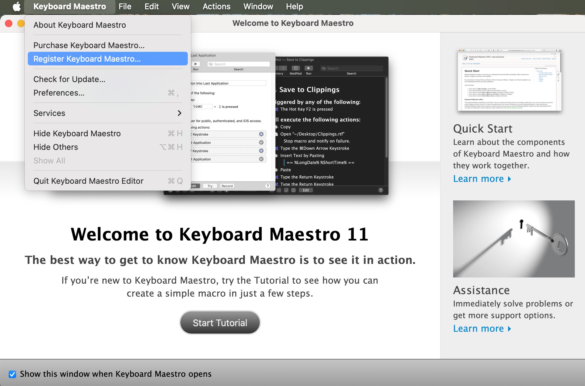 运行软件Keyboard Maestro,到菜单栏,点击Register Keyboard Maestro…